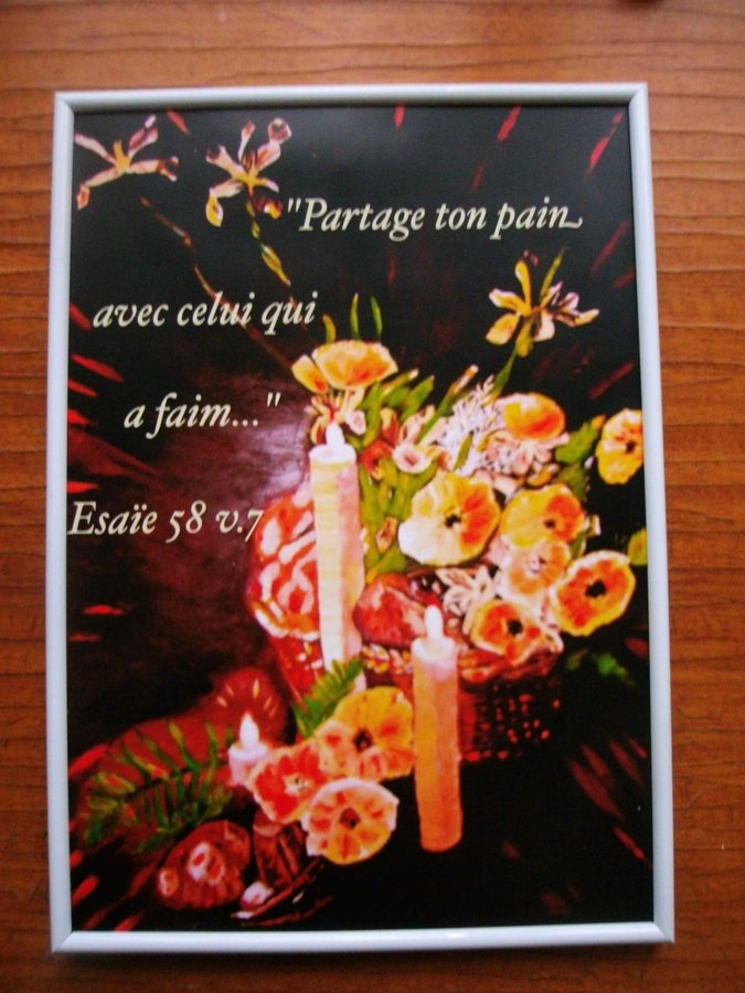Esaïe 58, verset 7, partage, pain, faim. Photos encadrées, formats A4, formats 20X30 cm, cadres, Petit prix