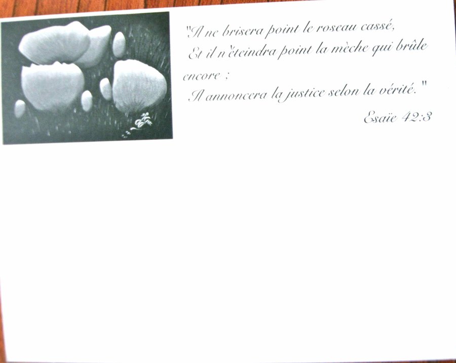 Esaïe 42, brisera pas, éteindra pas, lumignon, fume, roseau, cassé, petits prix, petites cartes postales, fleurs, surnaturel