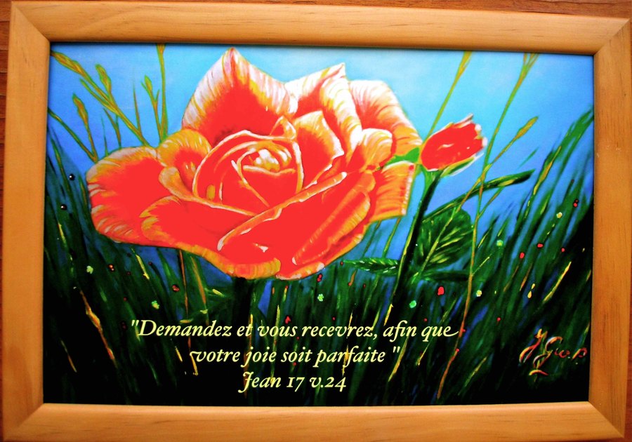 Jean 17, demandez, recevrez, joie, parfaite, réponses aux prières, Dieu qui pourvoit, rosen bourgeon, formats A4, formats 20X30 cm, petits prix, photos encadrées