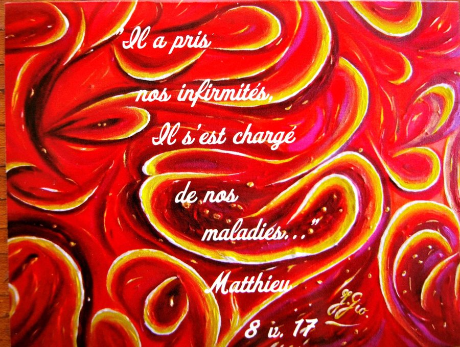 Matthieu 8, verset, 17, Il s'est chargé, maladies, Il a pris, infirmités, Marc 16, verset 28, miracles, accompagneront, foi, nouvelles langues, serpents, imposeront, mains, malades, guéris, guérison, style abstrait, petites cartes postales, cartes postales, petits prix